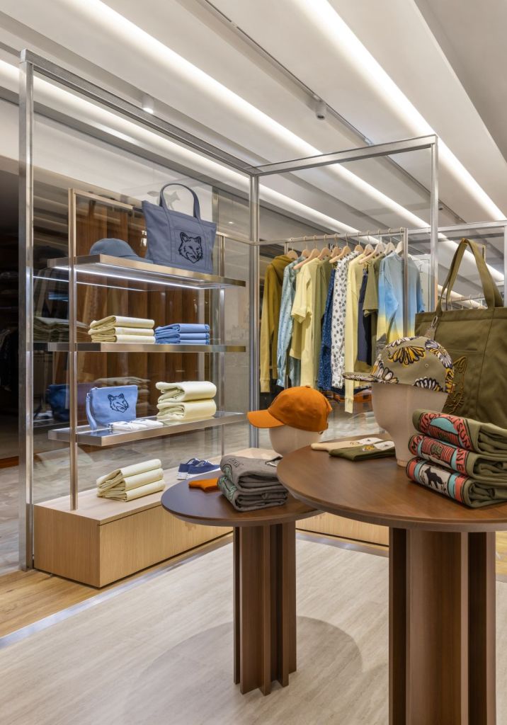 全新MAISON KITSUNÉ為了彰顯在地門市及地區獨特性,延續了台中獨有的現代感,與人文藝術魅力,以帶工業氛圍及突顯年輕氣息視覺為主。獨特店內設計,舒適開放式空間,穿著經典法式原木設計展現DNA,提供身臨其境的前衛體驗,營造自由且充滿活力的購物環境。