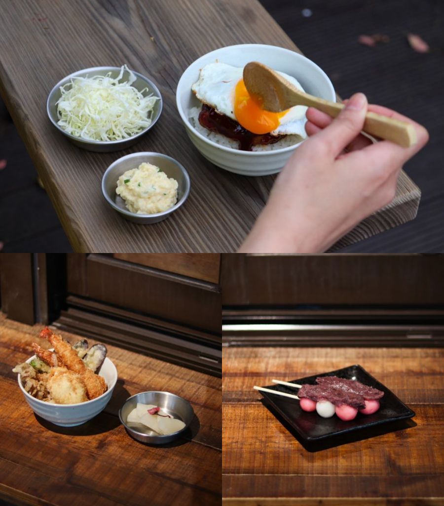 下酒菜餐點以日本人氣煎餃燒、乾式咖哩飯為主,每款餐點皆是主廚親自設計,每天現場廚房新鮮製作,餃子都是工作人員一顆顆帶著愛手包。4月櫻花季推出全新限量餐點,桜情。炸蝦丼、暖心 漢堡排定食、花見桜餅,在臺灣也能品嘗到經典賞櫻美食。