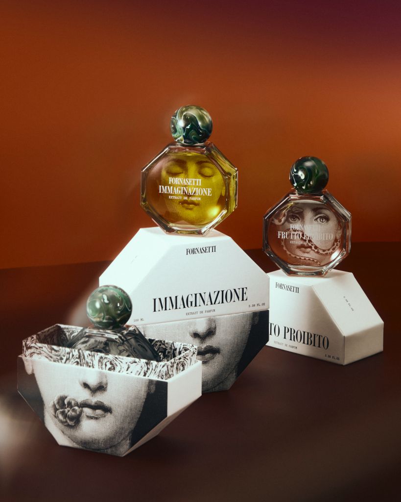FORNASETTI與義大利調香師Paolo Terenzi合作,孕育出”夢遊神域”(IMMAGINAZIONE)、”禁忌之慾”(FRUTTO PROIBITO)與”翡翠森境”(GIARDINO SEGRETO)3款香水。採用高質量天然萃取物製成,使用非侵入性方法提取,充分尊重自然珍貴精華。