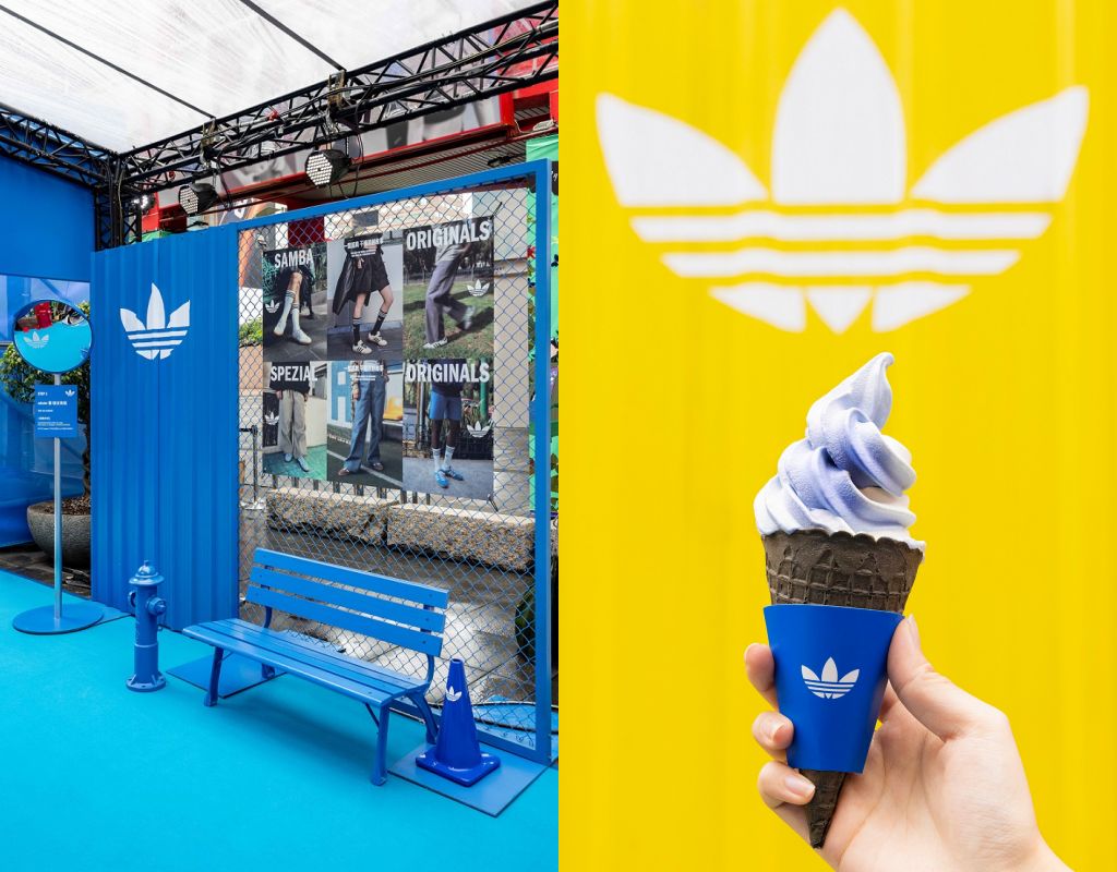 Originals!SLAND時尚咖啡服務站以三葉草原創藍結合CAFE!N潔白色調,代表adidas Originals原創能量,巧妙融合穿搭文化與咖啡品味,昇華為全新生活美學。期間限定限量adicolor繽紛包裝,時髦玩色咖啡杯裝組,超夢幻原創藍色霜淇淋,都在Originals。