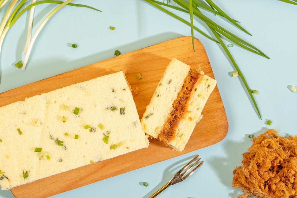 百宴自助餐廳點心坊也首度推出用平溪珠蔥特製”蔥香鹹蛋糕”,在口感輕盈濕潤的戚風蛋糕體撒入平溪產地直送翠綠珠蔥,撲鼻的濃郁蛋香與蔥香讓人食指大動,夾層抹上美乃滋與肉鬆,鹹甜迷人超唰嘴。