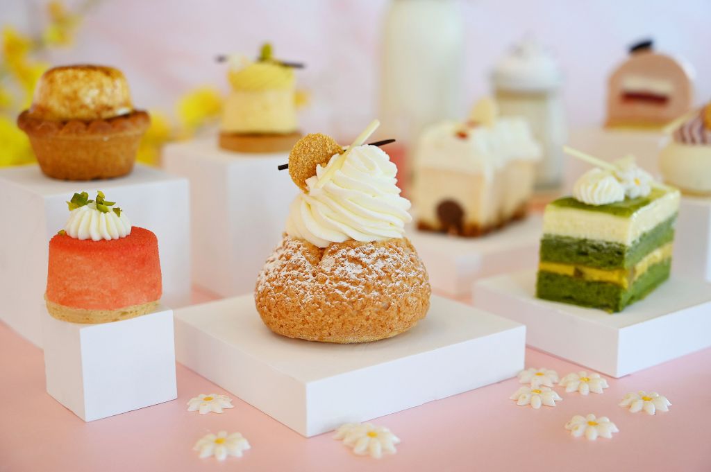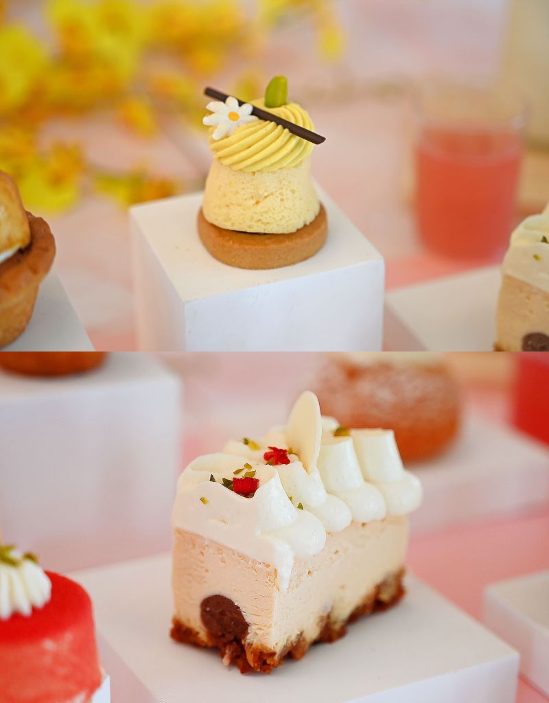 北海道起士舒芙蕾以蓬鬆的起司舒芙蕾蛋糕為主體,搭配酸甜芒果香堤醬及巧克力餅乾,層層堆疊出酸甜爽口滋味。十勝板栗香緹乳酪將糖漬栗子、帶皮杏仁揉進手工自製塔皮,入口能吃到糖漬栗子,白巧克力與乳酪香緹交錯提味。