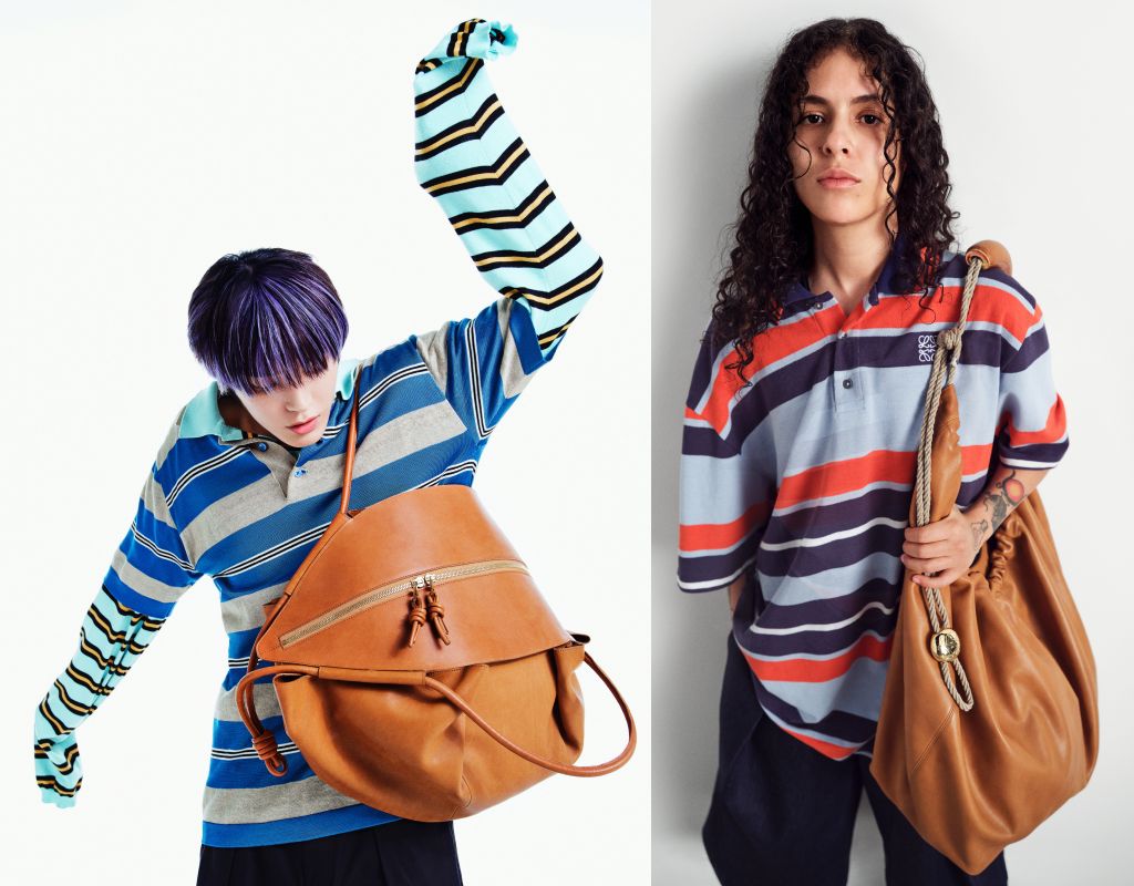 包袋款式延續LOEWE代表性編織工藝,經典PUZZLE與PUZZLE FOLDP托特包以全新酒椰葉纖維編織設計呈現,FONT托特包與棕櫚葉BUCKET也以夏日嶄新色彩登場。PUZZLE編織包鮮明條紋沿著包款切割面展現變化色彩,設計與圖案都別具一格。