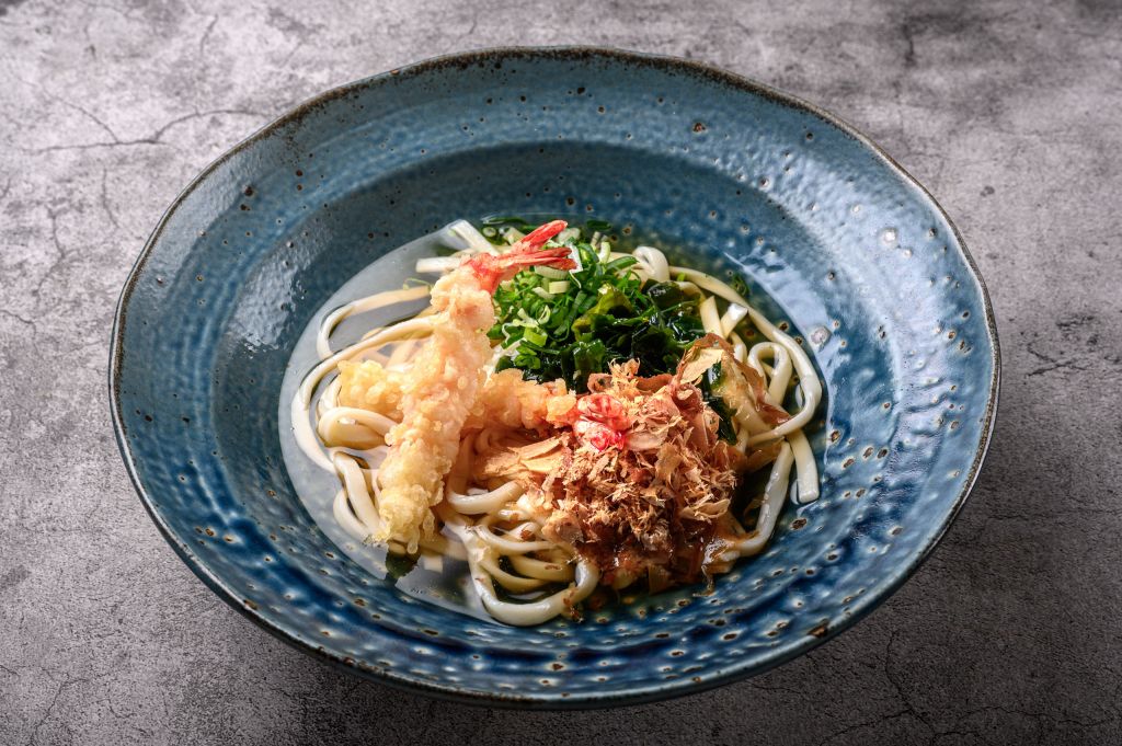 烏龍麵湯底加入柴魚、昆布等日式湯品基本元素,採用京都正宗上乘湯料,加入宗田節熬製高湯,具獨特煙燻香氣,日式頂級料亭風味瀰漫。