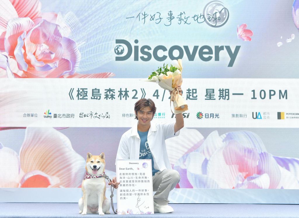 陳柏霖與柴犬Afuri化身Discovery年度愛地球大使,現身信義區與「地球.生之花」裝置藝術互動,分享《極島森林2》未曾公開幕後花絮,爆料成員Afuri爆肥故事,更有感而發在香堤大道廣場勇敢告白,朗讀獻給地球的情詩。