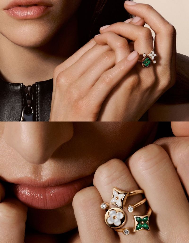 從有機寶石到裝飾寶石,每顆手工打磨的寶石皆光芒四射、嫵媚動人,呈現細膩光澤與繽紛色彩。迷人的粉色與白色珍珠母貝花朵、顏色濃郁的孔雀石與紅玉髓,及濃烈而不透明的縞瑪瑙相映成趣。各種尺寸及款式的吊墜、耳環、戒指與手鏈,使COLOR BLOSSOM珠寶系列成為路易威登最百搭又生動的系列之一。