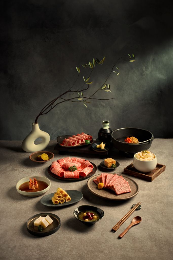 搭配手作豆腸、油揚絹豆腐、櫻蘿蔔等多樣精緻小點,再以加入蝦頭、文蛤與鮭魚骨等新鮮食材熬製的私房赤味噌湯與銀耳蓮子甜湯畫龍點睛,透過壽喜燒的食用文化,傳遞共享、慢饗的鍋物精神。