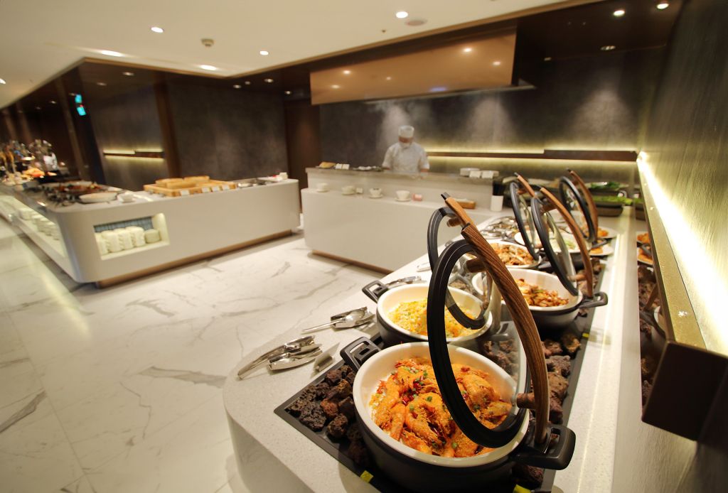 餐檯設備新增蒸籠區提供每天現做豉汁鳳爪、燒賣、流沙包等美味港點,日式美食區有專人現場握壽司及日式手捲,新鮮看得到。最受歡迎的爐烤牛肉、德國豬腳、生魚片、冷盤熱炒及現煎老爺招牌蘿蔔糕、現煮古早麵與哈根達斯冰淇淋一樣不可少,琳瑯滿目的百匯料理飽足感滿分。