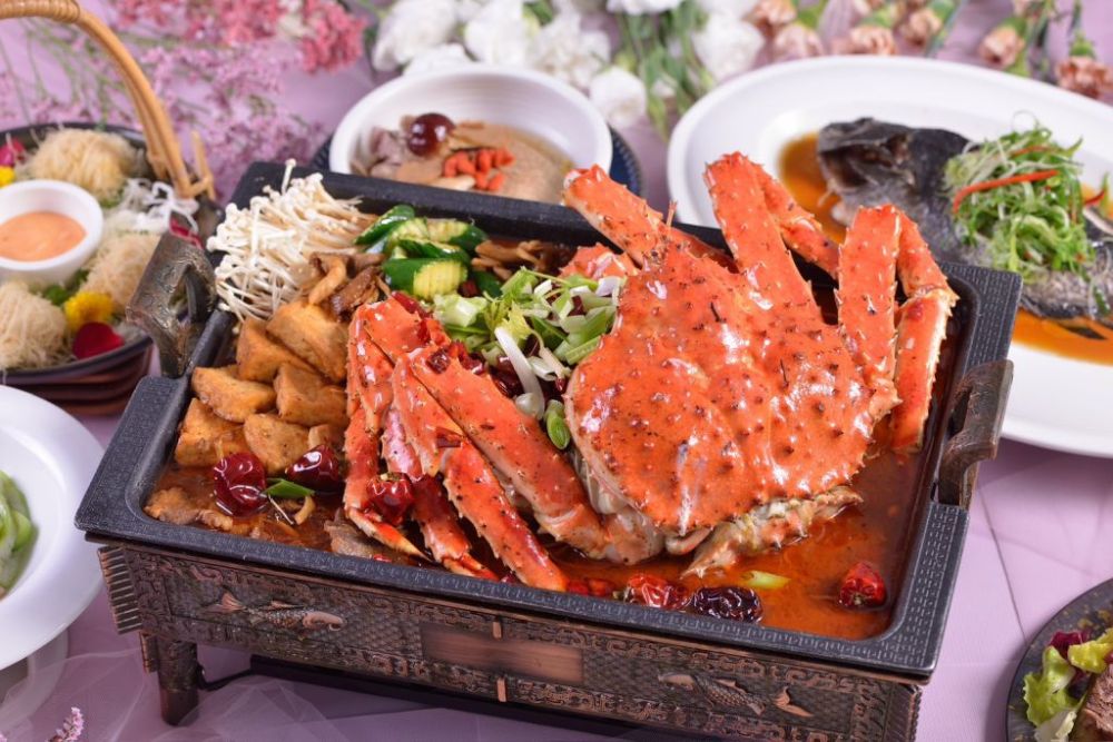 礁溪寒沐酒店推出限定母親節餐飲活動,以美食盛宴寵愛媽咪。”川薈”中餐廳貼心設計4人合菜,豪華川辣帝王蟹澎湃端上桌,以迷人的川蜀調味,滿足媽咪挑剔味蕾。每桌加贈一壺現打果汁,以美食表達對媽咪的感謝。