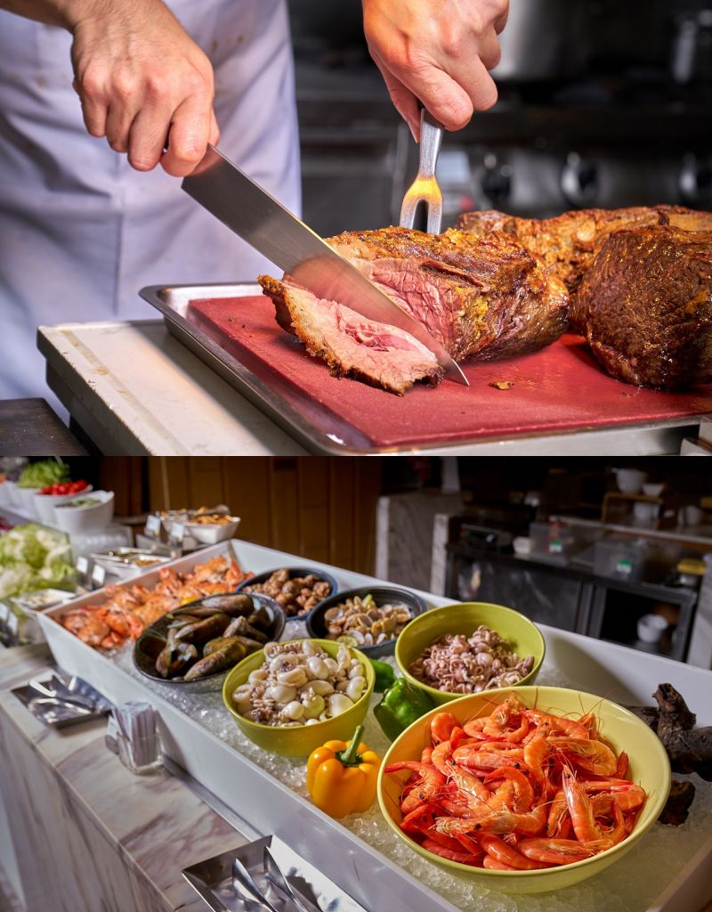 還有地中海紅酒燉牛舌、爐烤肋眼牛排、法式春蔬燉羊肉等主廚推薦必吃異國美饌,及加碼升級澎湃海鮮餐檯,平日午餐也能暢吃北海道生食級干貝與燒烤牡蠣等鮮甜美味、暢飲清爽柏克金啤酒與各式飲品、品嚐經典烈日鬆餅與DIY手作提拉米蘇等多樣精緻甜點無限暢吃。