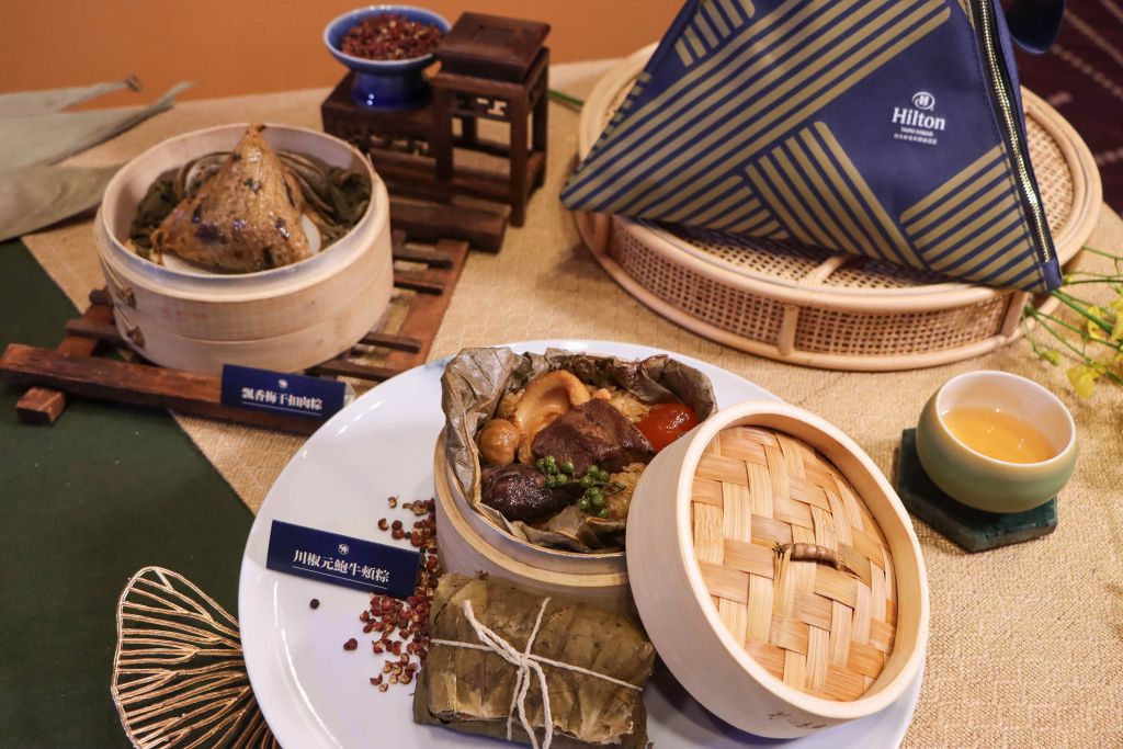 “粽所期待"慶端午,凱撒飯店連鎖台北新板希爾頓酒店研發創意新口味,推出端午節葷素綜合”希瑞龍年御品粽香禮盒”及素粽組合”希福吉祥蔬香粽禮”2款禮盒,加贈希爾頓獨家開發設計金字塔造型限量保冷袋。