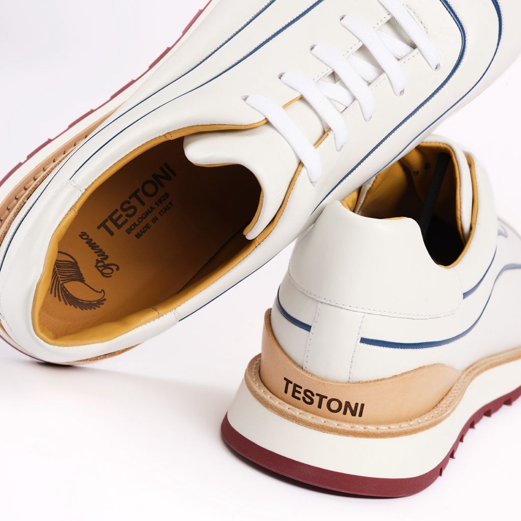TESTONI手造工藝為運動鞋更添新意,包含代表工藝 ”Bolognese Sacchetto”手套式縫法,是TESTONI紮根於義大利著名製鞋中心波隆那招牌工藝。MOENA運動鞋就是這種追求絕佳舒適度的絕佳例子。