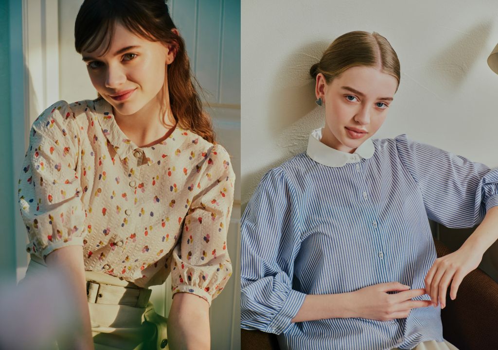 包含採用輕巧面料針織而成蓬袖開襟外套,及點綴白色領口的藍色條紋襯衫,設計簡約而可愛,無論工作或休閒場合,皆可與不同服裝搭襯,形塑多樣風格。高腰半身裙推出芥末黃新色選,令造型更搶眼。