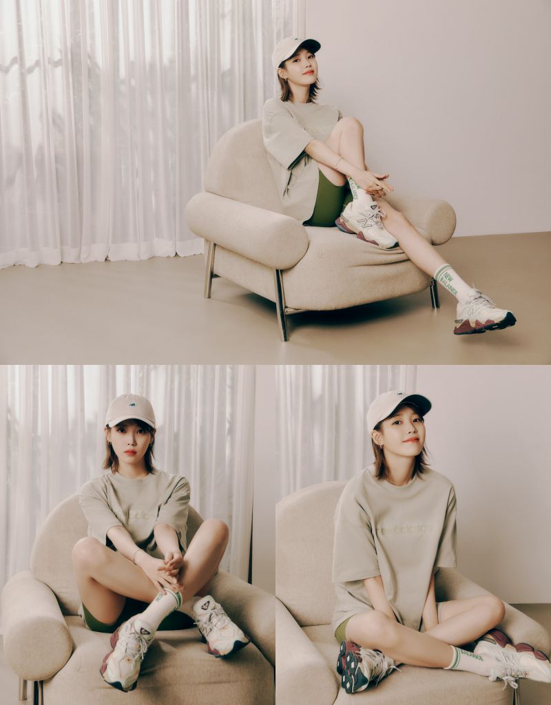 亞太區形象大使IU(李知恩)本季也化身為運動女孩,穿上Sport Essentials寬鬆短袖上衣與同款且配有NB Dry吸濕排汗功能緊身單車褲,和諧色系穿搭配上擁有吸睛鑽石大底9060鞋款,動靜皆是矚目焦點。