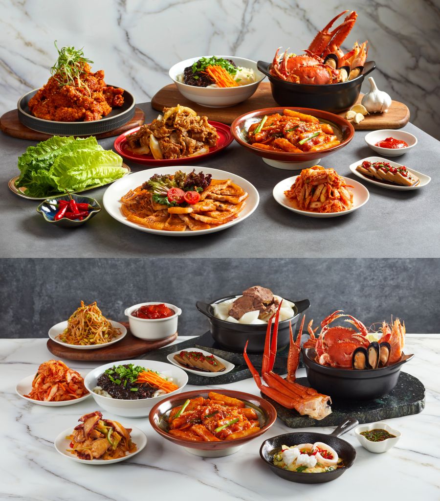 全新主題韓食餐桌集結數十款韓國美食,現煮餐檯區多道料理現點現做,熱騰騰上桌。松葉蟹大醬湯各式海味融入醬香中,湯頭鮮美清甜。雪濃湯以牛骨牛腱久煮,滋味濃郁醇厚。海鮮煎餅配料豐富,現點現煎酥脆噴香。