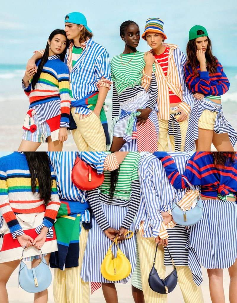 經典海軍藍與白色、金絲雀黃、夕陽橙、薊紫、鼠尾草綠、螢光粉等色調,充分展現Polo Ralph Lauren對剪裁考究與色彩疊搭的完美平衡,在豐富色彩交織活力氛圍下,盡情揮灑美式風格不羈風采,喚起盛夏美好度假回憶。