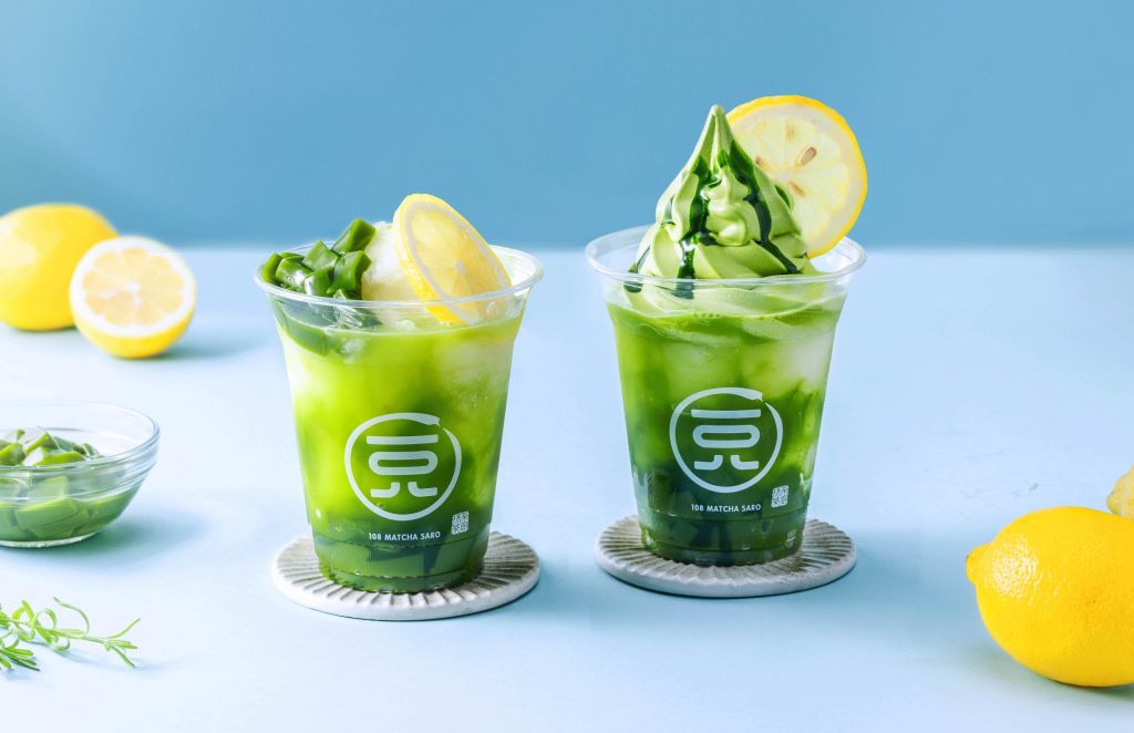 一O八抹茶茶廊108 MATCHA SARO推出暢涼清爽的檸檬╳抹茶系列,滋味迷人,檸檬黃、抹茶綠的配色在視覺也讓人倍感沁涼。