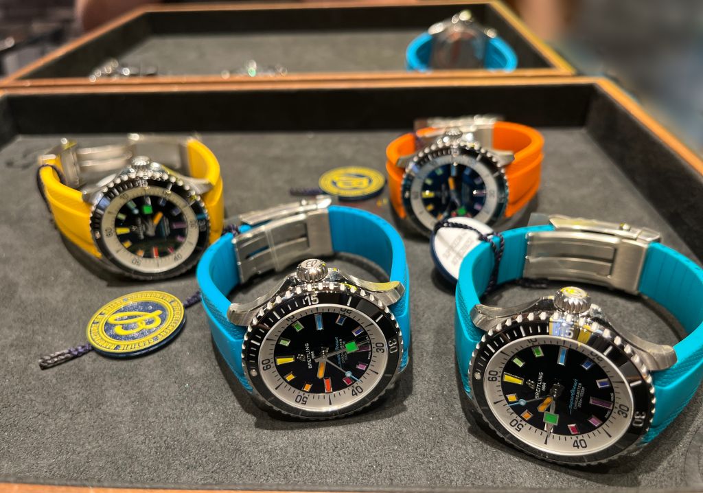 百年靈推出時標顏色設計為彩虹漸層彩虹錶盤腕錶、個性迷彩錶盤Superocean Automatic 46 Super Diver超級海洋自動機械46超級潛水員深潛腕錶,全新錶款從1960、1970年代傳奇SuperOcean Slow Motion超級海洋腕錶獲得啟發,將潛水錶基本元素簡化為高對比度分鐘刻度、粗體夜光時標與槳形指針。