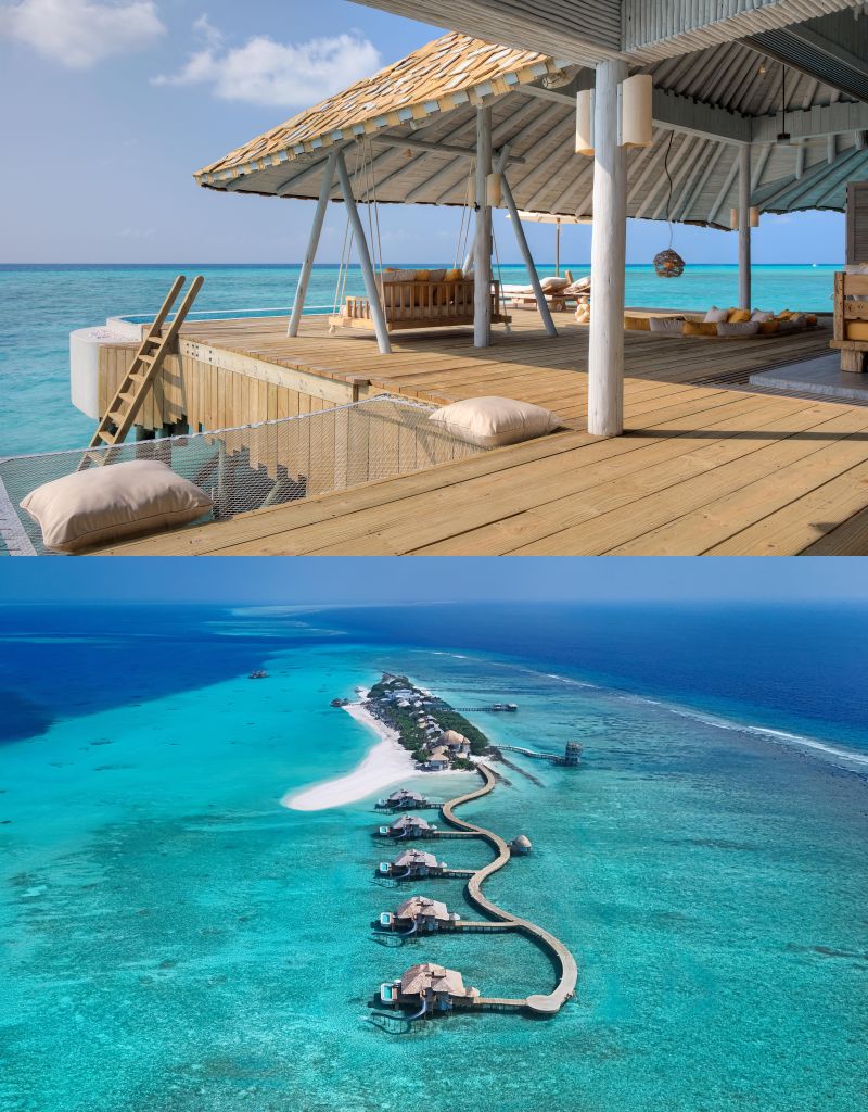 SONEVA SECRET 2024度假村14棟海灘及水上別墅,包括只能乘船前往的Crusoe環礁湖別墅與馬爾地夫首座漂浮別墅Castaway。 每棟別墅設計都與純凈自然融為一體,可直通白色沙灘或波光粼粼的環礁湖。寬敞的主臥套房設有可滑動開合屋頂,可仰望滿天繁星,相鄰臥室為全家出遊的客人或小團體提供充足居住空間。