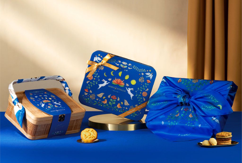 Aunt Stella詩特莉同步推出"星夜"系列禮盒,以深遠靜謐藍色色調為基礎,融合許多熱鬧豐富大自然元素,象徵中秋佳節人情團聚與大地豐收的氛圍。推出與陽光社會福利基金會合作"星夜花語"精緻鐵盒、"玉兔漫步"環保禮盒、精緻手工"星夜之盛"竹籃禮盒,及日式質感風呂敷"星夜之錦"禮盒4款。