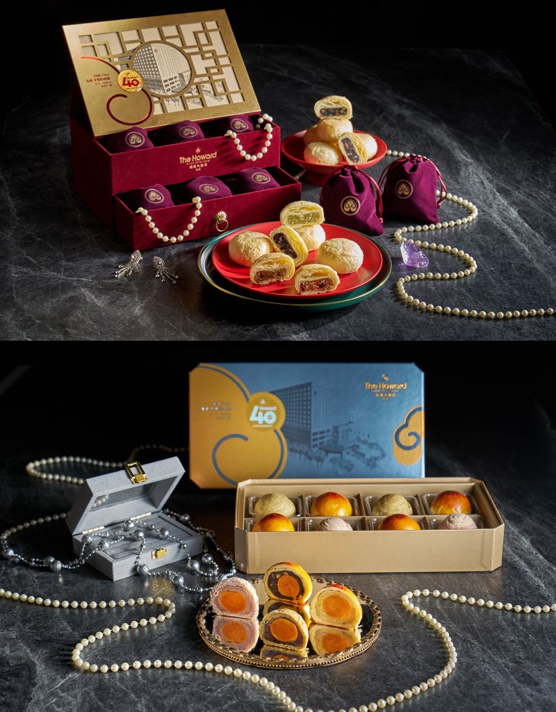 珍珠坊粵式餐廳特別在40周年紀念廣式月餅”映月禮盒”加入手繪餐廳剪影設計,口味方面有長年熱銷蓮蓉松子、棗泥桂圓與干貝蟹黃,創新推出香辣川味椒麻入餡,宛如一口大小的濃郁月餅版麻辣鍋,香辣又帶勁。