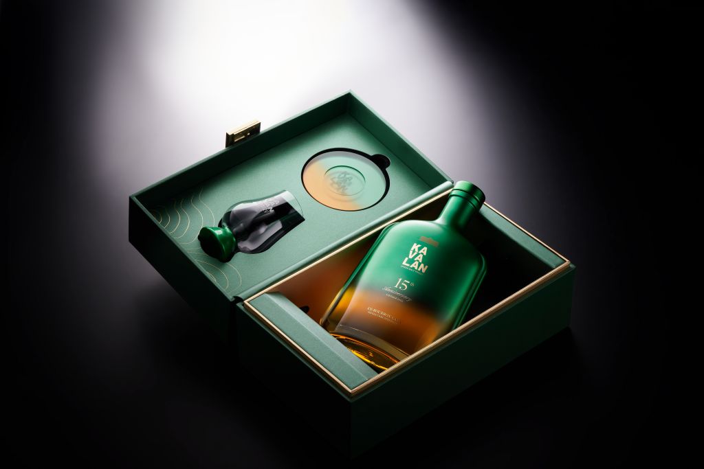 外包裝酒瓶設計以威士忌桶陳過程與創立至今探索幻化過程為概念,瓶身保有玻璃通透特性,呼應從純淨酒心蛻變至深邃酒液歷程,並獨家打造精緻贈禮時光幻煥漸層杯墊及品酩玻璃杯,品酩噶瑪蘭15年歲的美好。