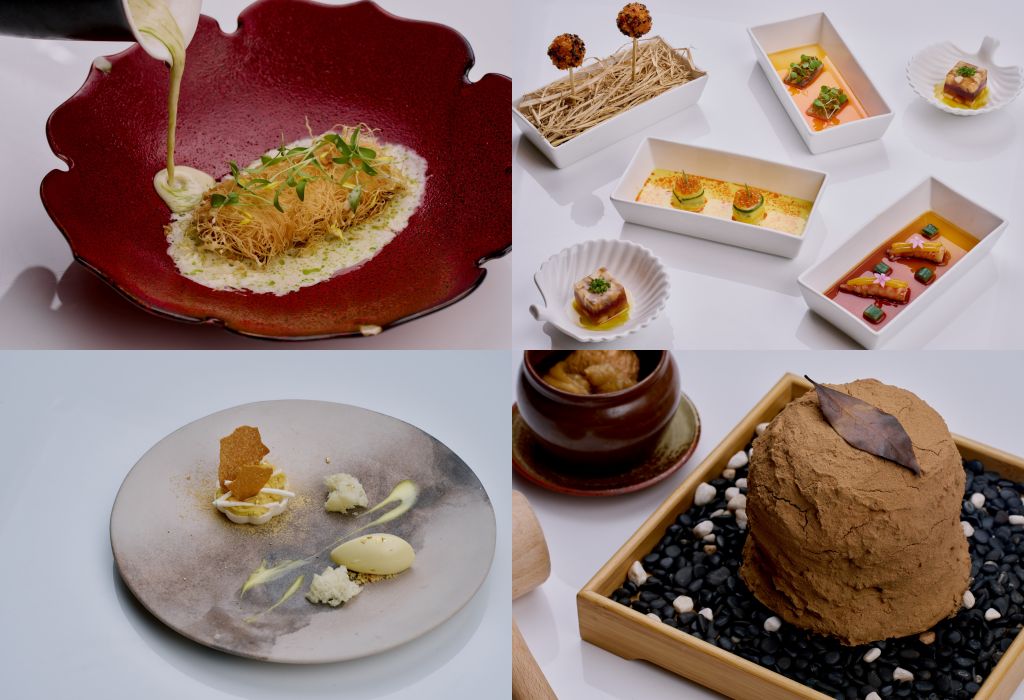 開胃菜羅列5道呼應傳統辦桌頭盤佳餚,鮮香口感美味迷人。熱前菜”日本厚岸生蠔/韭菜花/手工乳酪”靈感來自西南沿海傳統小吃蚵嗲,海味鹹香喚起漁村小鎮記憶。”澳洲龍蝦/赤海膽/法國魚子醬”底部鹹味烤布蕾口感似蒸蛋,龍蝦肉塊奶香濃郁、Q彈脆口大滿足。
