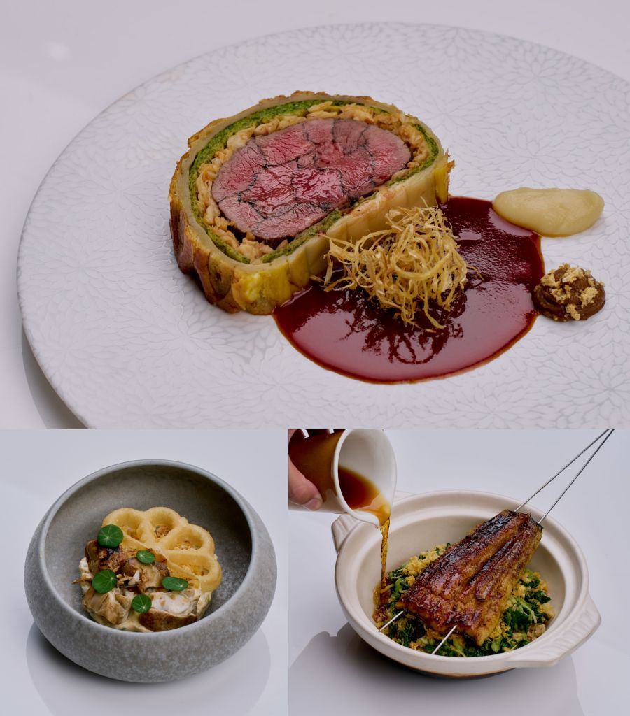 “米粉蜜柑鯛/蒜頭酥/芋頭/魚白湯”感受氣味豐潤扎實美味。”土窯佛跳牆”古法窯製香氣,為甘甜順口湯品增添獨特尾韻。”柑橘柚子冰沙”以柑橘與日本柚子果泥為主,酸甜清爽轉換味蕾。主餐”威靈頓台灣牛/豆瓣/甜醬油"選擇台式豆瓣醬醃漬軟嫩的台灣牛排,特殊刀工讓肉質更Q彈有嚼勁,是盤創意無限不用碗裝的牛肉湯。