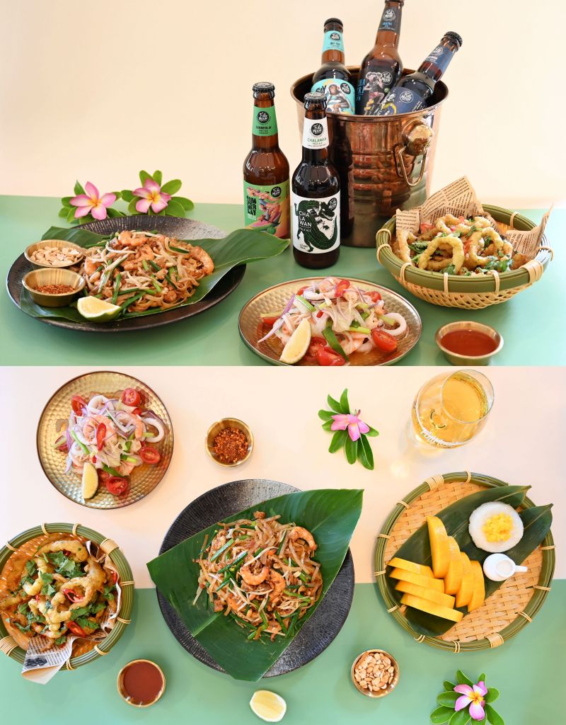 6款泰國正宗滿月精釀,各式風味提供旅人多樣佐餐選擇,"查拉萬鱷魚淡艾爾"完美平衡麥芽甜與酒花苦、"布薩峇花神精釀白啤酒"清爽不苦澀帶花香、"安達曼普吉精釀黑艾爾"被喻為麥芽界愛馬仕、"查柴無尾熊精釀IPA"添加4種含柑橘與木質香酒花、"嗨啤猴Cold IPA”熱帶水果與柑橘風味層層堆疊、"紅心芭樂百香果艾爾"清爽微酸甜。