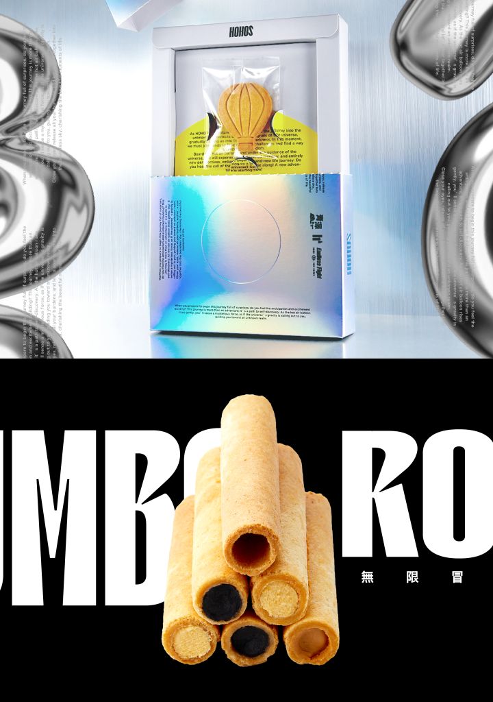 藝人炎亞綸自創火火選物HOHOS與台東在地伴手禮青澤聯名厚蛋捲”JUMBO ROLL無限冒險禮盒”,每根酥脆厚蛋捲足足有6層蛋捲皮,選用在地食材共推出塩之花生、極黑芝麻、台東鮮乳,及聯名版獨家製作炎布丁夾心4種口味,多種滋味厚蛋捲讓每口都是驚喜,包裝使用台東熱氣球為主視覺,表現升空時帶來無窮希望跟勇氣。