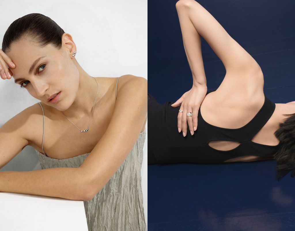 採用18K金揉以明亮式切割鑽石打造金色調珠寶,宛若熹微晨光奢華美韻,在燦金鋒芒中映耀幸福時刻。帶氧化純銀材質與明亮式切割銀色調珠寶,洋溢光影層次以純粹簡約清麗質感,將愛意融入生活化作溫柔陪伴。