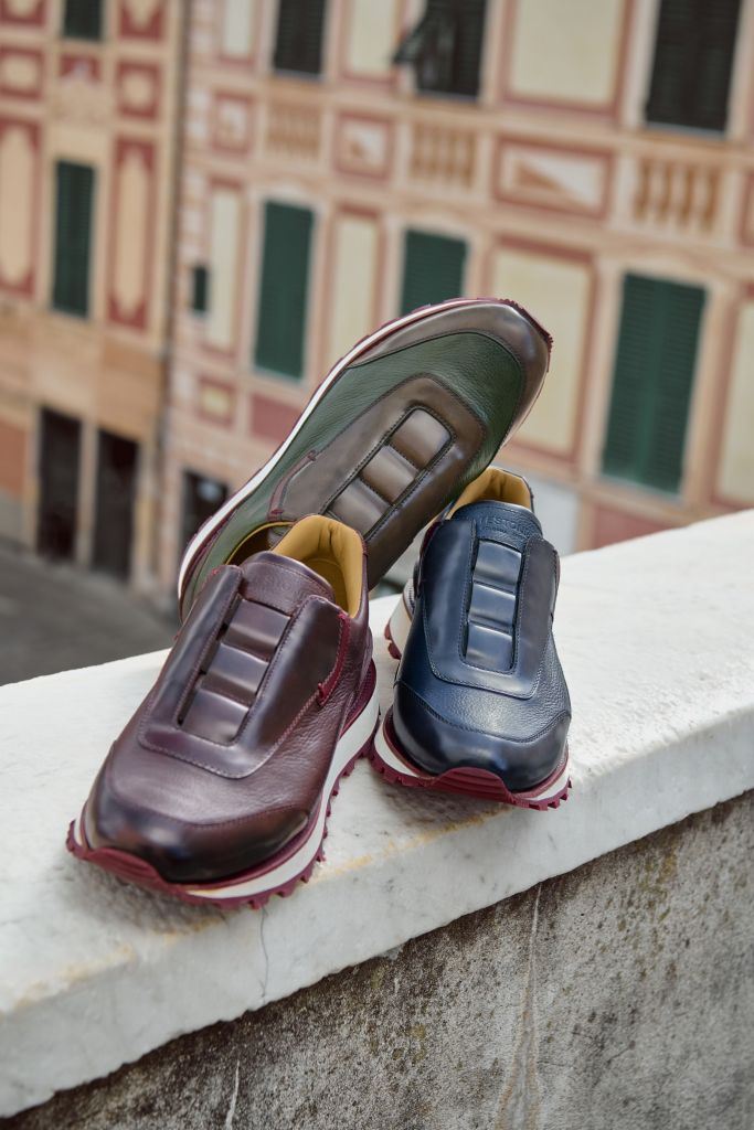 TESTONI臻品系列重點產品MOENA PIUMA運動鞋,採用Sacchetto Bolognese手套式縫法工藝搭配雙色拼接設計,靈活輕便且貼合腳型。該鞋款為休閒鞋的典範,設計旨在為穿者每一步提供絕佳舒適體驗,替日常生活注入活力,盡顯動感身姿。