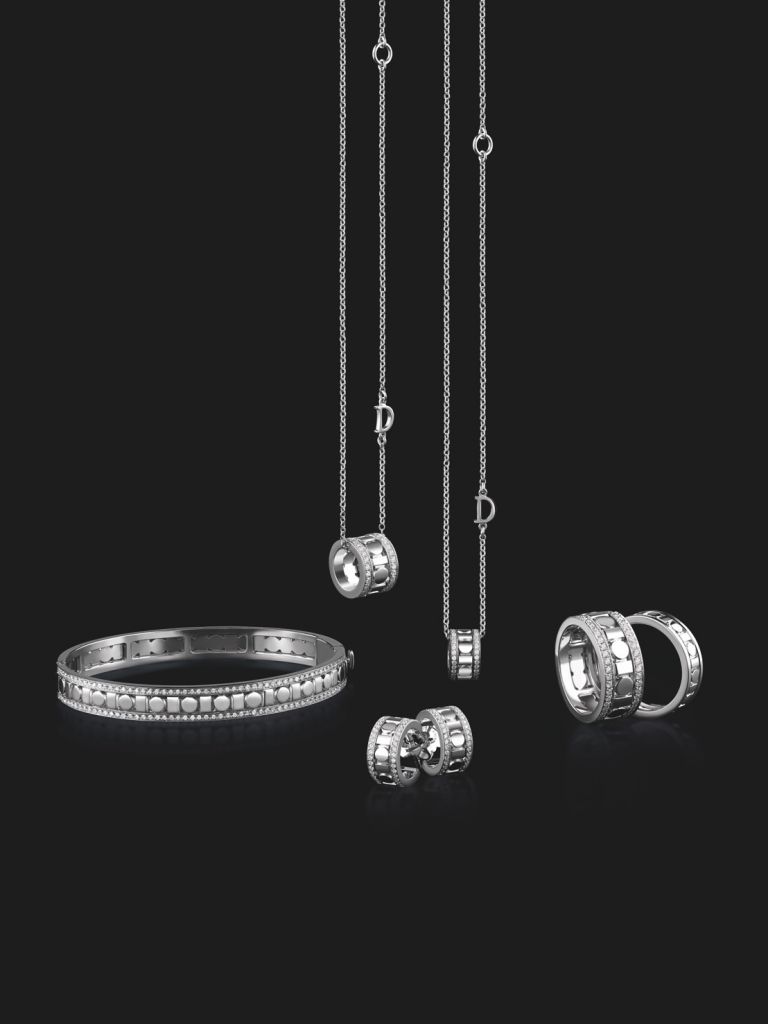 18K白金、18K黃金、18K玫瑰金打造的戒指或項鍊吊墜,輕觸內圈,貴金屬環會如捲軸般地旋轉,圓形與長方形交錯設計,象徵數位時代0與1符碼不斷滑動,意味全新世代不斷前行,傳達時來運轉的好兆頭。
