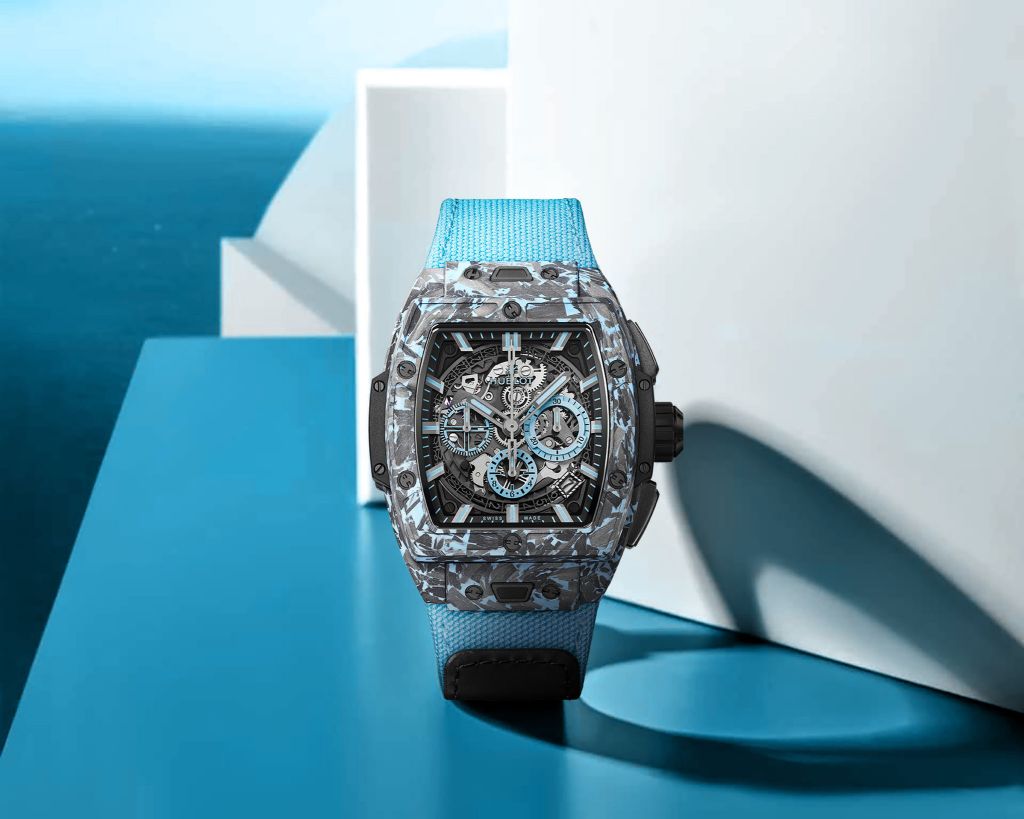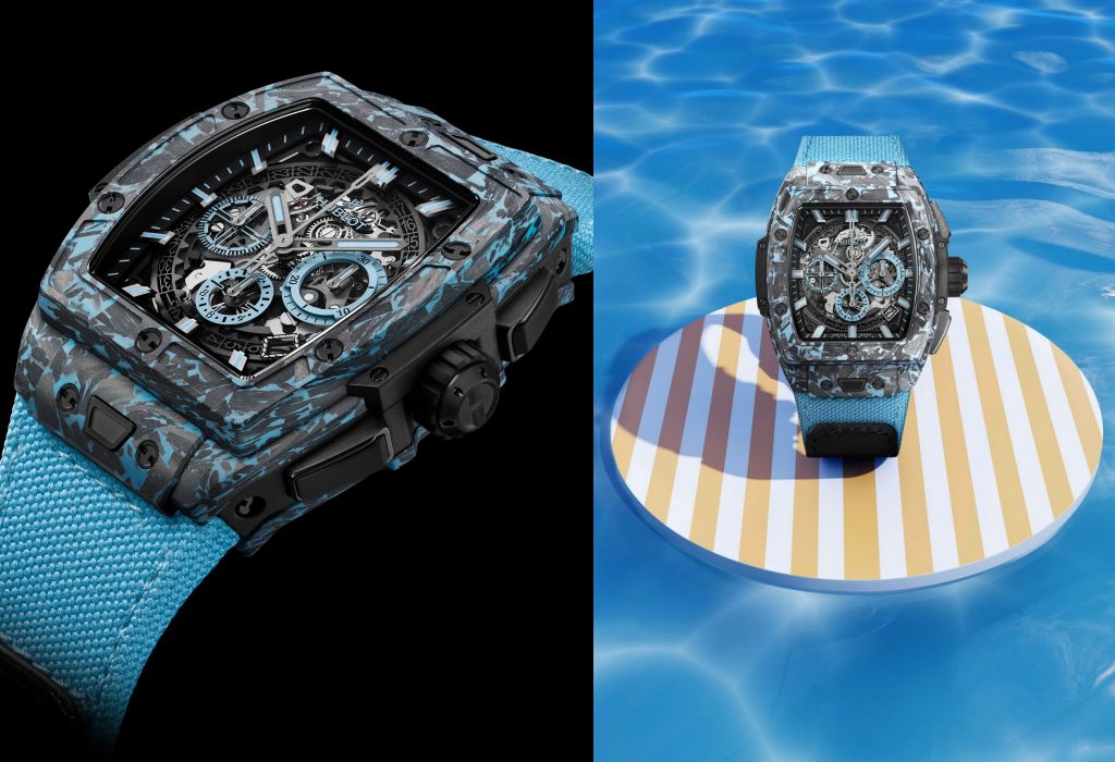 瑞士頂級鐘錶HUBLOT宇舶錶推出盛夏高顏值都會運動風腕錶SPIRIT OF BIG BANG迷彩藍碳纖維計時碼錶,時尚奢華運動風格讓夏日穿搭更有型。