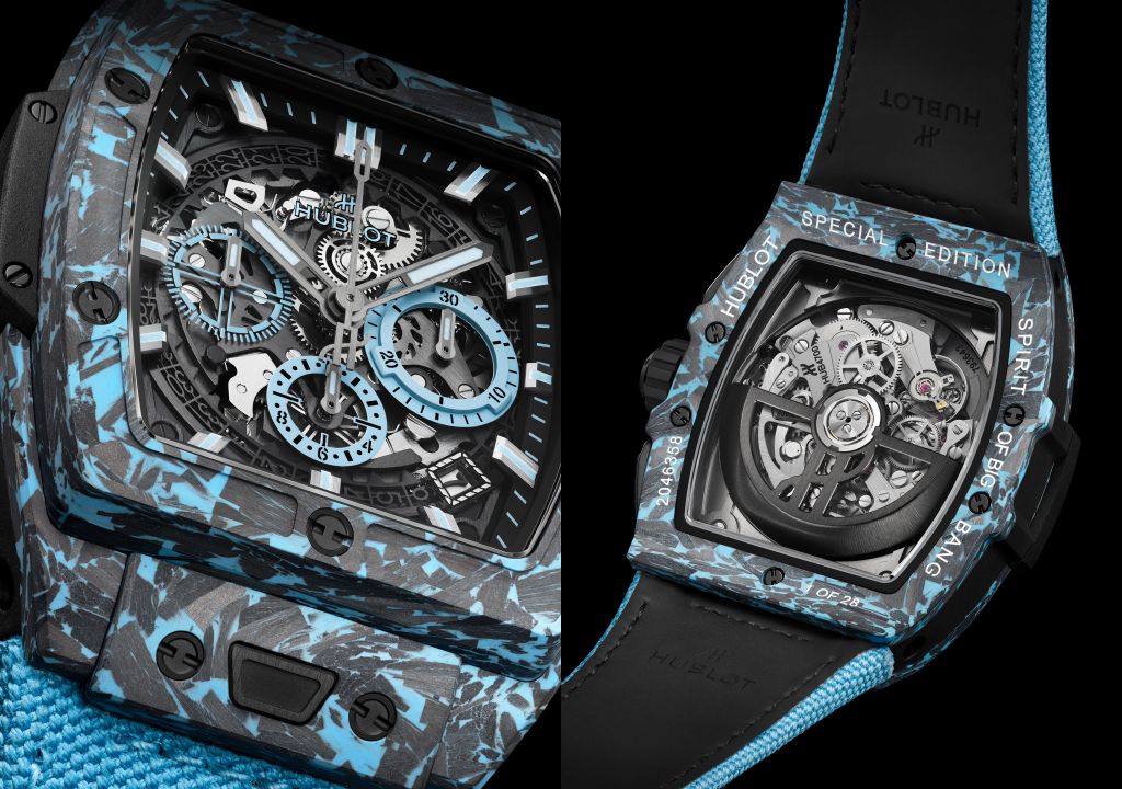 SPIRIT OF BIG BANG迷彩藍碳纖維計時碼錶提供50小時長動能。通過藍寶石水晶表殼可清晰看到複雜的機械結構,藍色指針與刻度為錶盤增添強烈的節奏感與結構美感。鏤空錶盤在迷彩藍碳纖維錶殼勾勒下,外觀看起來更加有層次,同時多了幾分率性感覺。