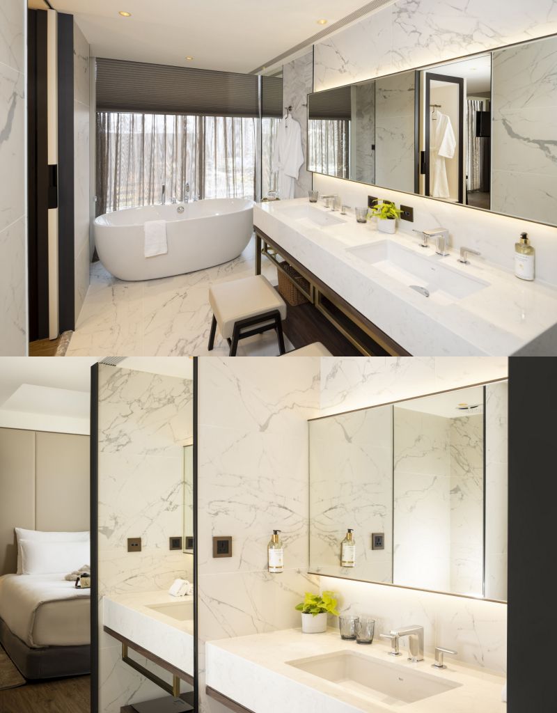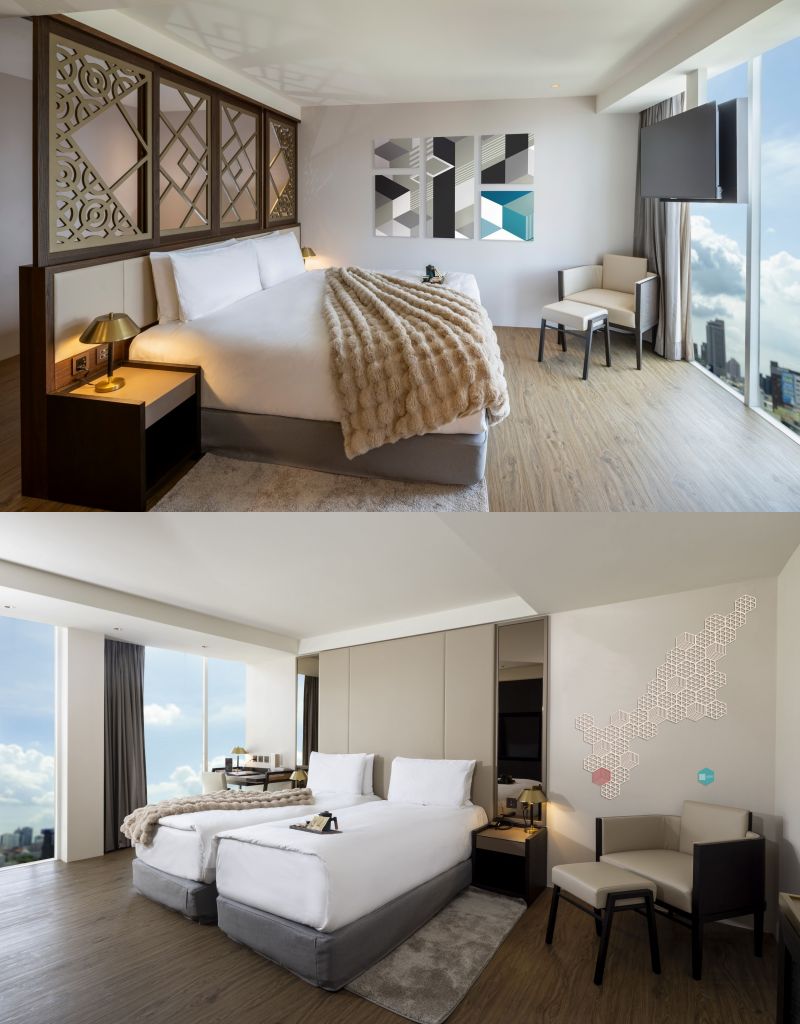 房間延續貨櫃、港口意象與新東方美學,完美詮釋舒適寬敞居住寓所。每間客房採用席夢思頂級床墊,配置西班牙ROCA衛浴設備、小美犀語音助理、FLORE 2億負離子高速智能吹風機、NESPRESSO膠囊咖啡機及TWININGS茶,悉心準備義大利寶格麗BVLGARI沐浴備品,提供卓越的住宿體驗。