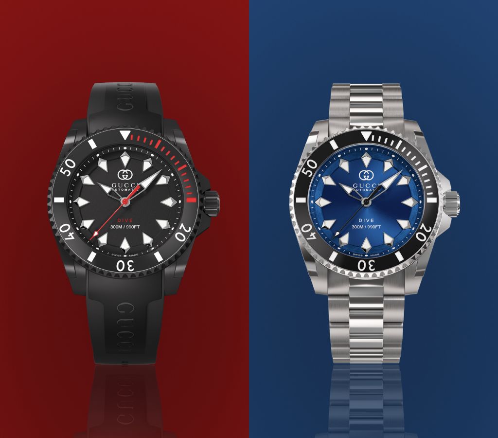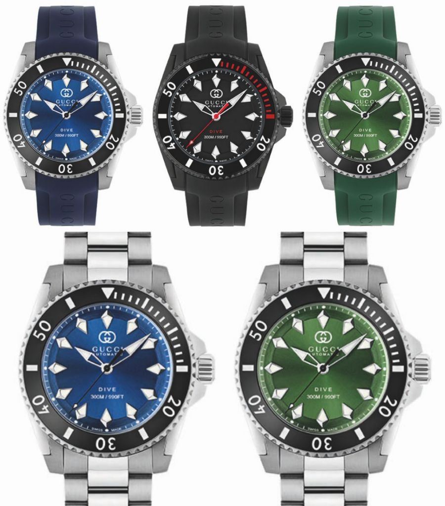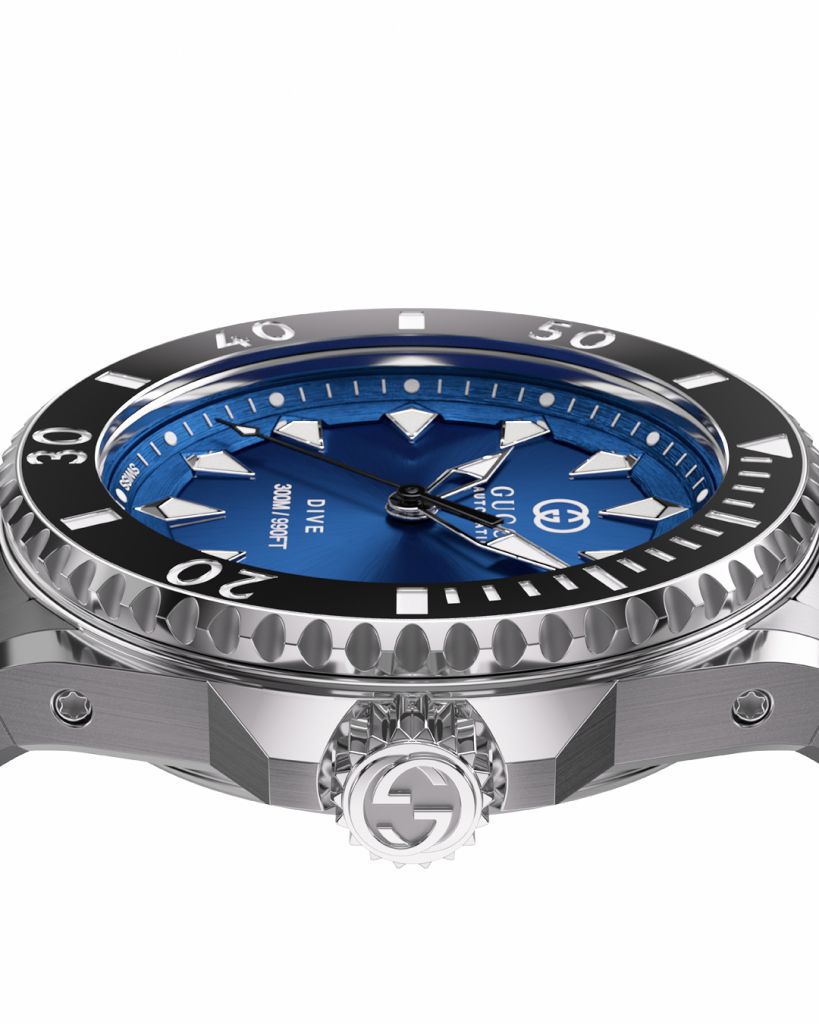 GUCCI專業功能錶款系列GUCCI DIVE自動潛水腕錶推出5款全新錶款,錶面共有海藍、碧綠、煤黑3種顏色,以更高機能設計突顯本系列冒險精神。