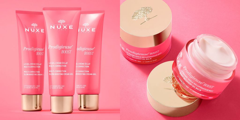 天然植萃科研保養專家法國NUXE巴黎歐樹全新推出"Prodigieuse® BOOST粉漾彈潤亮顏系列",以高濃度抗氧植萃結合抗老植物精華,搭配容易被吸收吸收的水感乳狀質地,將卓越植物能量釋放給肌膚,幫肌膚煥走暗沉,自信發光。
