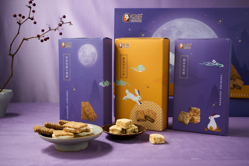 老楊方塊酥特別推出2024限定秋暮追月禮盒,內含全新口味奶油松露風味方塊酥,精選台灣在地食材入料,完美融合經典口感與奢華風味,展現創新精神,體現中秋浪漫情懷。以質感紫色與溫暖黃色交疊精緻典雅包裝,搭配應景的滿月、玉兔奔月等中秋經典意象圖騰,散發濃厚中秋氣息。