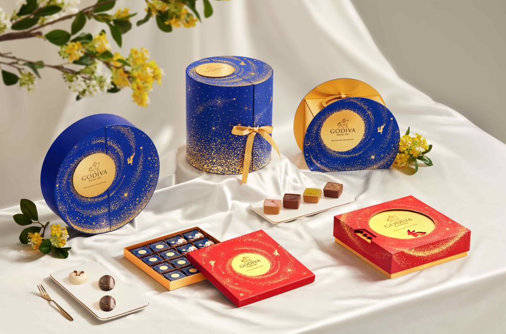 比利時皇室御用巧克力GODIVA創新呈獻5款絢爛中秋限定系列禮盒、巧克力月餅及造型巧克力,以星夜、玉兔為靈感,為團圓時刻帶來璀璨驚喜。燙金設計點綴漫天星河,玉兔靈動跳躍其間,為中秋之夜增添生機與活力,傳遞美好祝願。