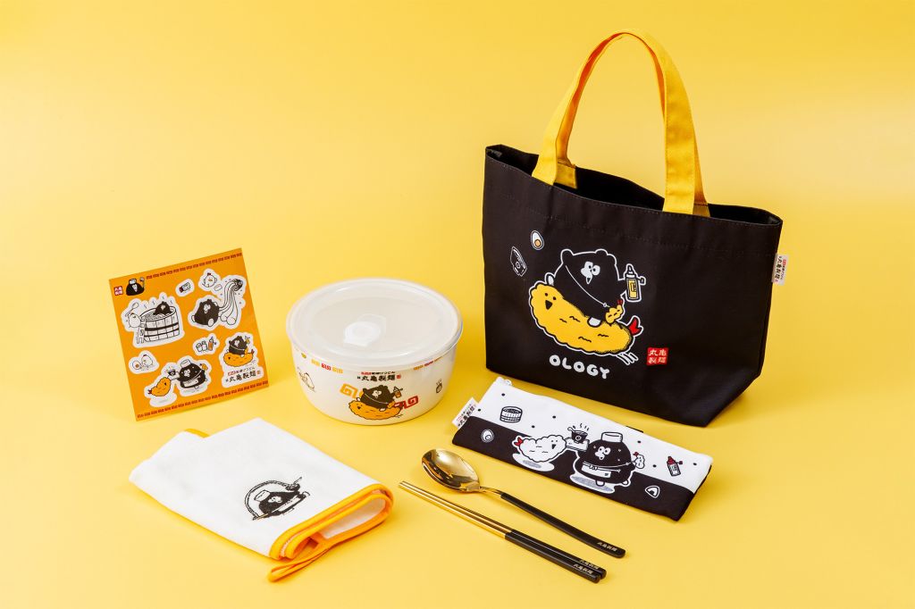 丸亀製麵攜手人氣插畫角色OLOGY奧樂雞合作推出一系列萌感十足限量周邊商品。奧樂雞是一隻體型圓胖黑雞,可愛模樣與呆萌表情十分討喜,搭配路人雞、丸亀製麵經典釜揚烏龍麵及炸蝦等,幽默互動,絕對是日常療癒的好物。