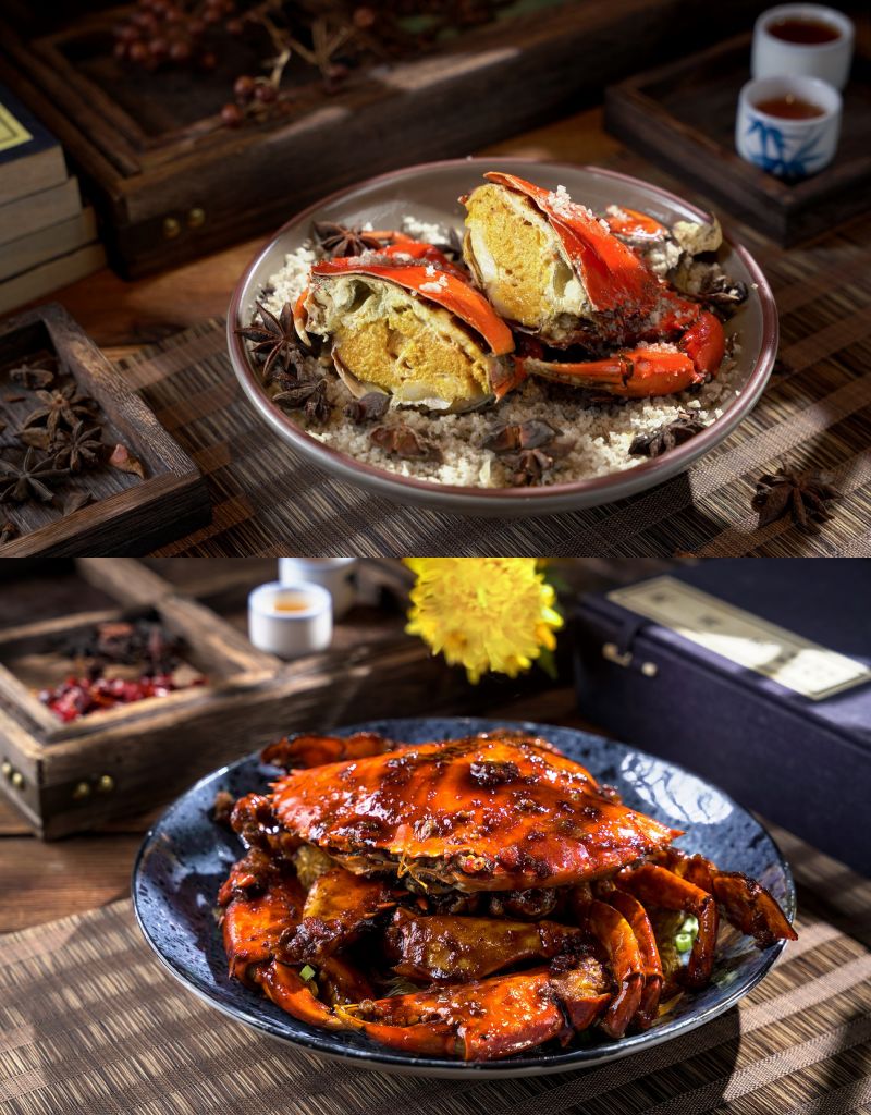主廚陳偉強選用嚴選產地直送頂級規格活體美蟹沙公、沙母、處女蟳與黃金蟹品種進行烹調,期間限定7道奢華蟹餚美饌,完美呈現秋季螃蟹的鮮美,盡情品嚐蟹腳、蟹膏,體驗飽滿秋蟹美味,讓味蕾食慾之秋感受真正的時令幸福感。