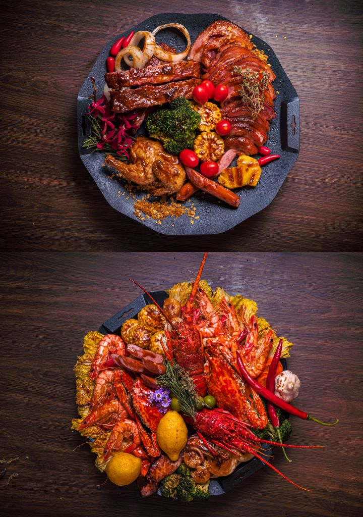 海拼盤每款海鮮都經過鑄鐵獨特烹調手法,釋放食材鮮美原汁原味,以最原始的烹調方式保留海鮮美味,每一口都能嚐到大海的鮮甜。搭配獨門特調醬汁烤肉、麻辣及奶油3種口味,交織出絕妙風味,滿足對美味的期待與渴望。