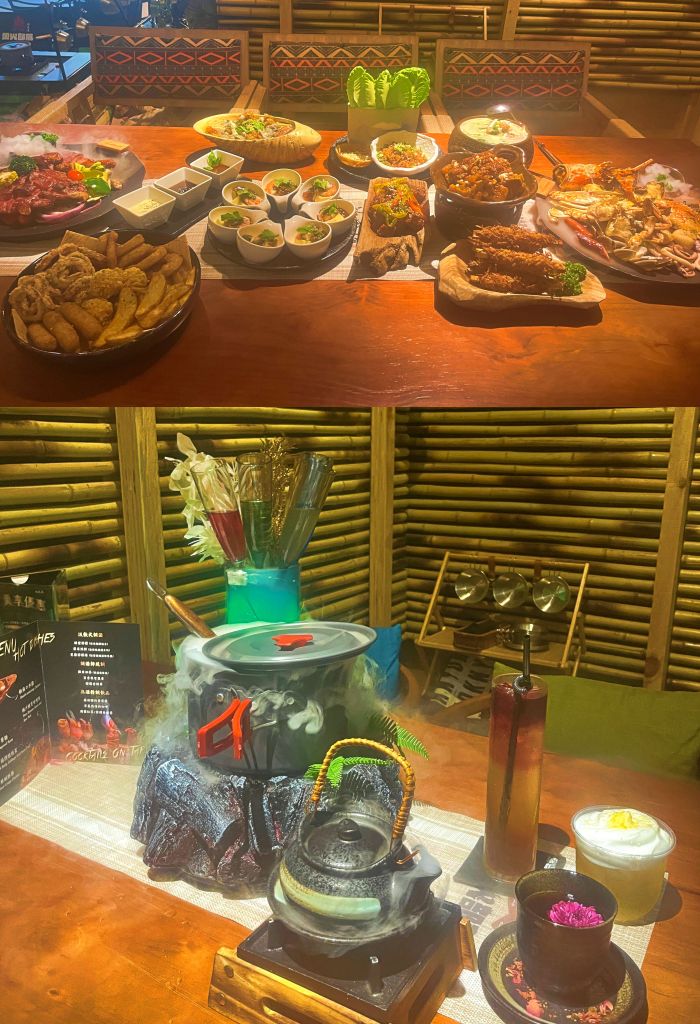 在熱情營火前不可缺少炭烤料理,螢火部落主打鑄火料理,特色在於烹調過程中產生獨特風味與視覺效果,食材在高溫下迅速被烤製,外表焦香內嫩,保留食材原汁原味。菜色選擇豐富多樣,此外更精心研發多款特色菜,滿足不同味蕾,提供獨特體驗。