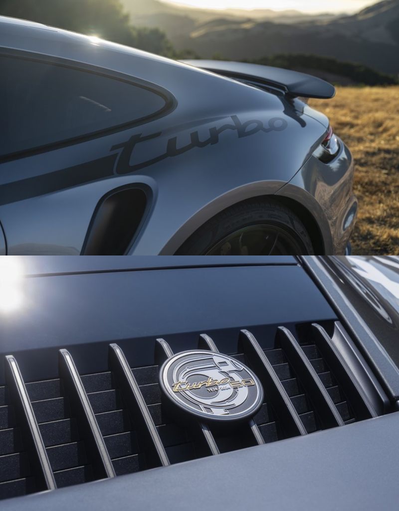 後擾流板葉片、後裙板、後視鏡底座與進氣口飾件採用低調奢華煤灰色烤漆Anthracite Grey。後引擎蓋格柵上紀念徽章飾有渦輪增壓圖樣與1974-2024年份字樣,見證半世紀的渦輪傳奇。開啟車門時LED車門投影燈會投射出渦輪增壓器圖像。