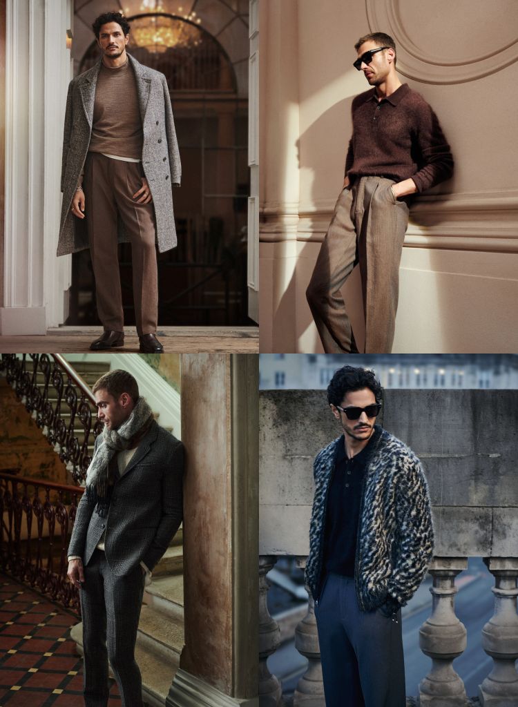 系列在質料與設計達到完美平衡,注重硬朗線條與柔和手感對比,呈現正式感並增加服裝流動性。色彩以巧克力色、灰色、深藍黑色與成熟橄欖色呈現本季深邃、大膽且浪漫調性。細緻的緹花織物、刷過的皮革與絲質羊絨展現畫意的筆觸,將秋日詩意氛圍完美融入設計中。