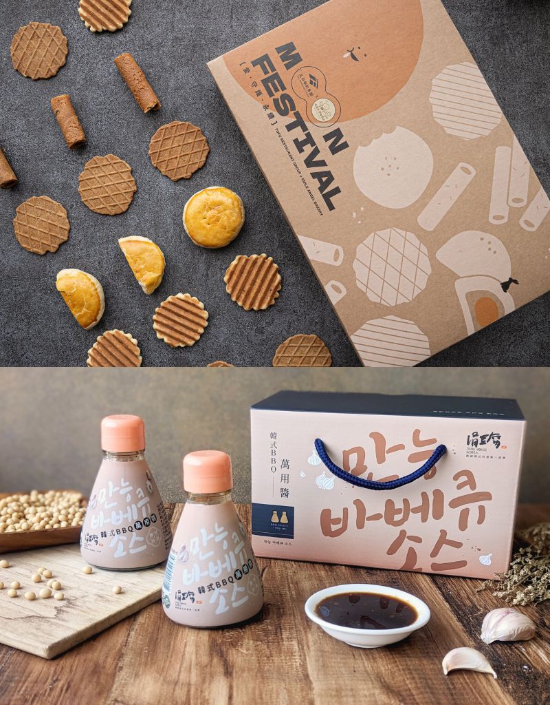 豆府餐飲集團首度攜手微笑天使烘焙坊推出聯名款月餅禮盒,內有波蘿蛋黃酥及4種不同口味的韓系小點,並將主廚研發韓式BBQ萬用醬升級禮盒版,散發濃郁黃豆與小麥香味,甘甜風味適合烤肉時拿來刷魚、蝦、透抽等海鮮,在家烤肉也能端出韓式燒肉店的美味。