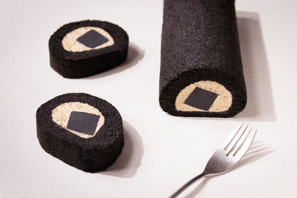 小小樹食以鶴茶樓芝麻糊凍及鶴頂紅茶為靈感,紅茶芝麻凍奶卷主體為帶空氣感蓬鬆、柔軟的蛋糕體,融合濃濃黑芝麻,內餡完整帶入鶴頂紅茶與芝麻糊凍,強烈芝麻香氣驚嘆味蕾,還可以吃得到細碎芝麻渣,紅茶香更突顯多層次驚艷感。