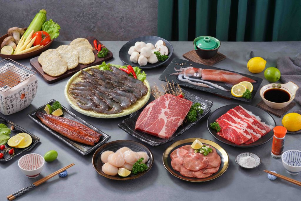 日本北海道生干貝低溫急速凍結鎖住鮮度與甘甜;特選鮭魚厚切肉質豐腴細膩,燒烤後帶天然油脂香氣;鮮凍大白蝦純海水養殖,活蝦凍結留住鮮甜美味。還有眾多獨家泡菜及生菜,爽口清脆解膩再烤一輪。