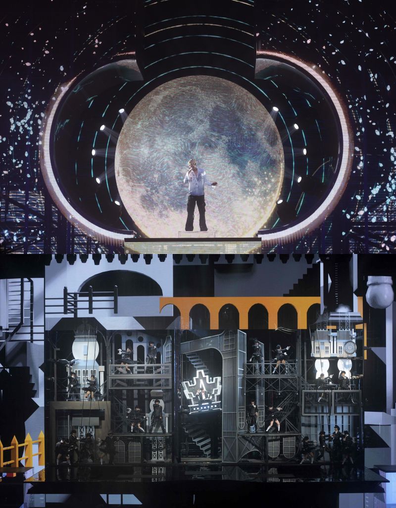 郭富城在全新世界巡演首站再度發揮舞台王者本領,特別砸下重金打造立體多元舞台,當中巨翼LED舞台多角度立體展現,衝擊視覺特效震撼全場,一座精心打造的魔幻方塊凱旋門猶如一個點題式魔幻出口(Exit),搭配多重視覺特效,令人目眩神迷。